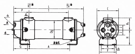 | 型號(hào) | 換熱 面積m2 | Dg | C | L | T | P | H1 | G | A | H | F | K | d5 | d2 | d1 | J | 重量 (kg) |